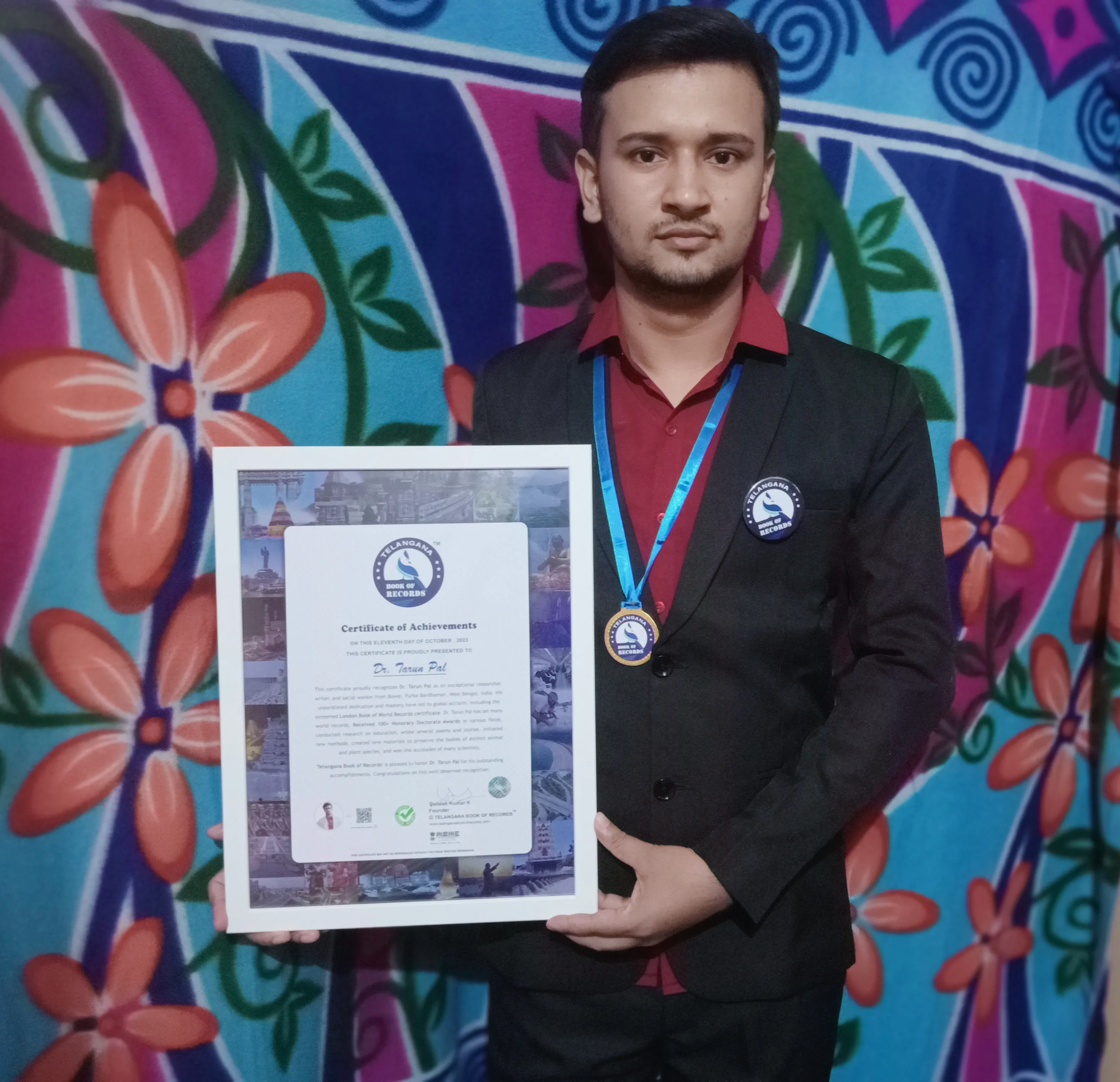'Telangana Book of Records' is pleased to honor Dr. Tarun Pal for his outstanding accomplishments. Congratulations on this well-deserved recognition.