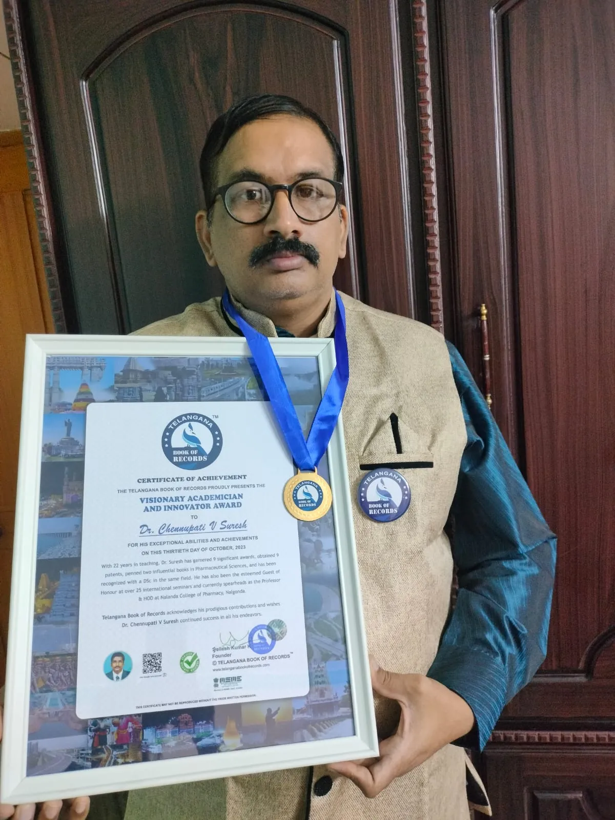 Telangana Book of Records acknowledges his prodigious contributions and wishes Dr. Chennupati V Suresh continued success in all his endeavors.
