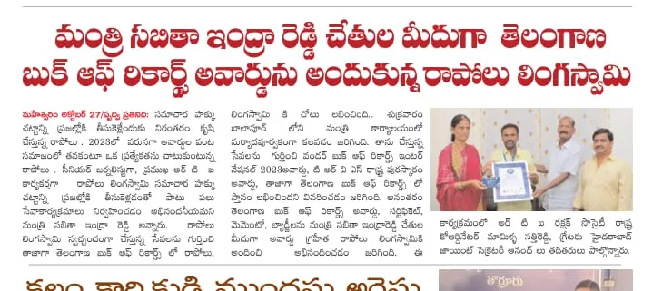 Rapolu Lingaswamy has carved a niche for himself as an RTI activist and journalist, passionately dedicating himself to truth and transparency. His fervor for journalism coupled with his activist spirit has led to significant recognitions, such as the "TRVS Telangana State Award". His relentless pursuit for truth and transparency stands as a testament to his dedication towards the collective good of society.