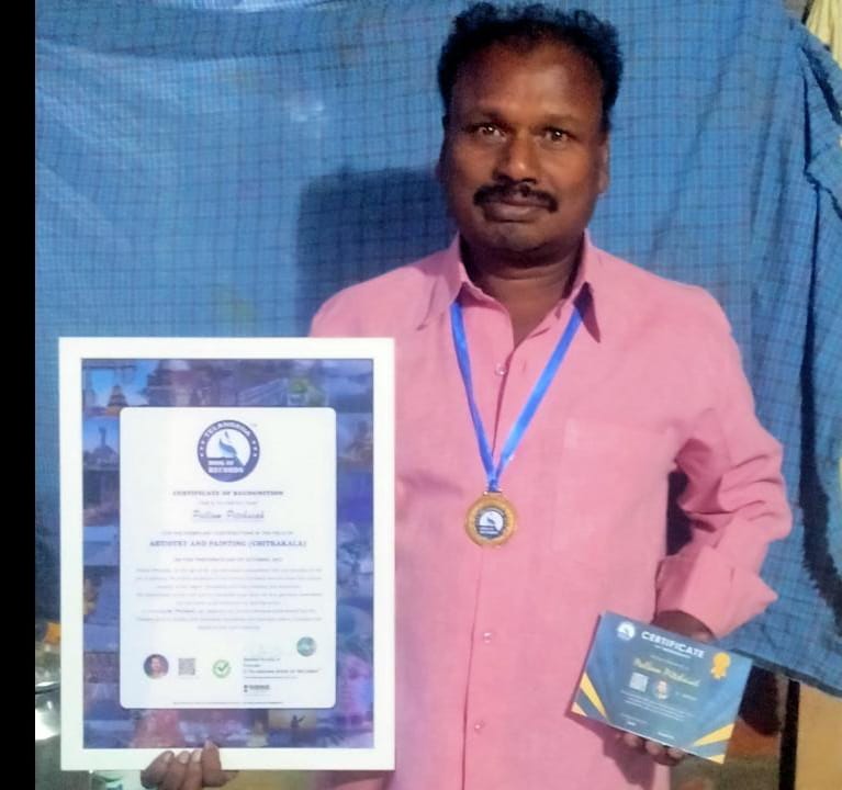 Pallam Pitchaiah, at the age of 48, has showcased unparalleled skill and devotion in the art of painting. His artistic endeavors in the field of Chitrakala have enriched the cultural tapestry of our region, resonating with both tradition and innovation. His commitment to the craft and his inimitable style have not only garnered admiration but also serve as an inspiration for aspiring artists.