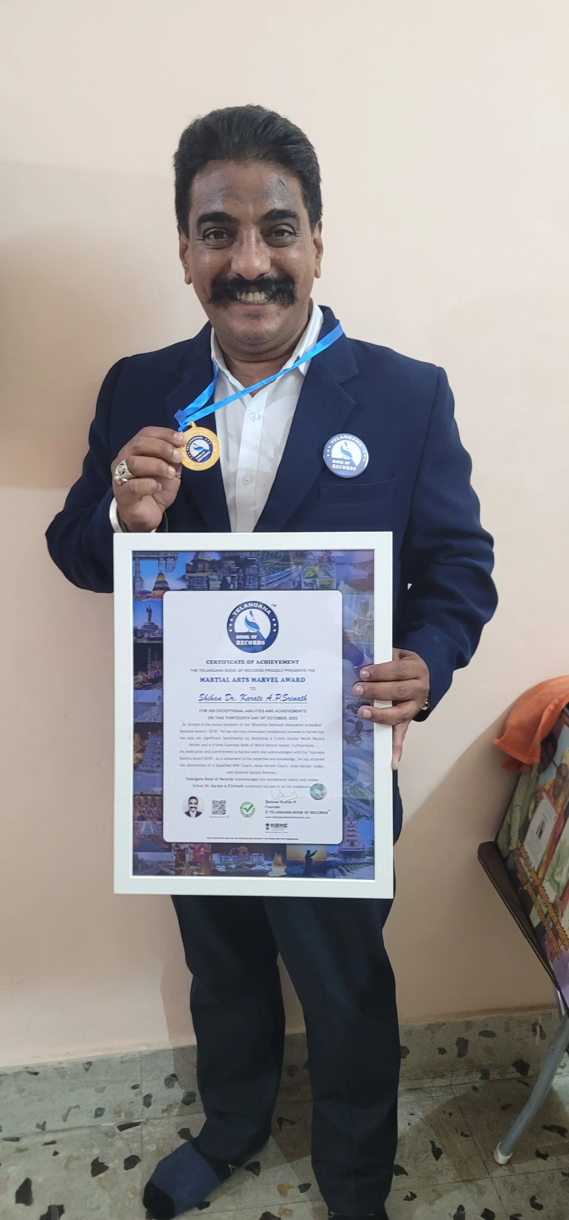 Telangana Book of Records acknowledges this exceptional talent and wishes Shihan Dr. Karate A.P.Srinath continued success in all his endeavors.